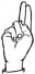 На ћирилици написано РУМЕНА БАБОВИЋ састоји се из 13 слова [?]. Исписано ћириличном једноручном азбуком за глувонеме:
